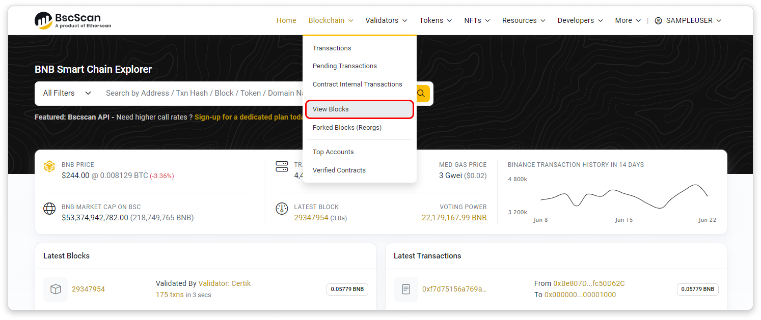 Clicking on the block height will bring you to the block details page. You may learn more about viewing specific block details here.