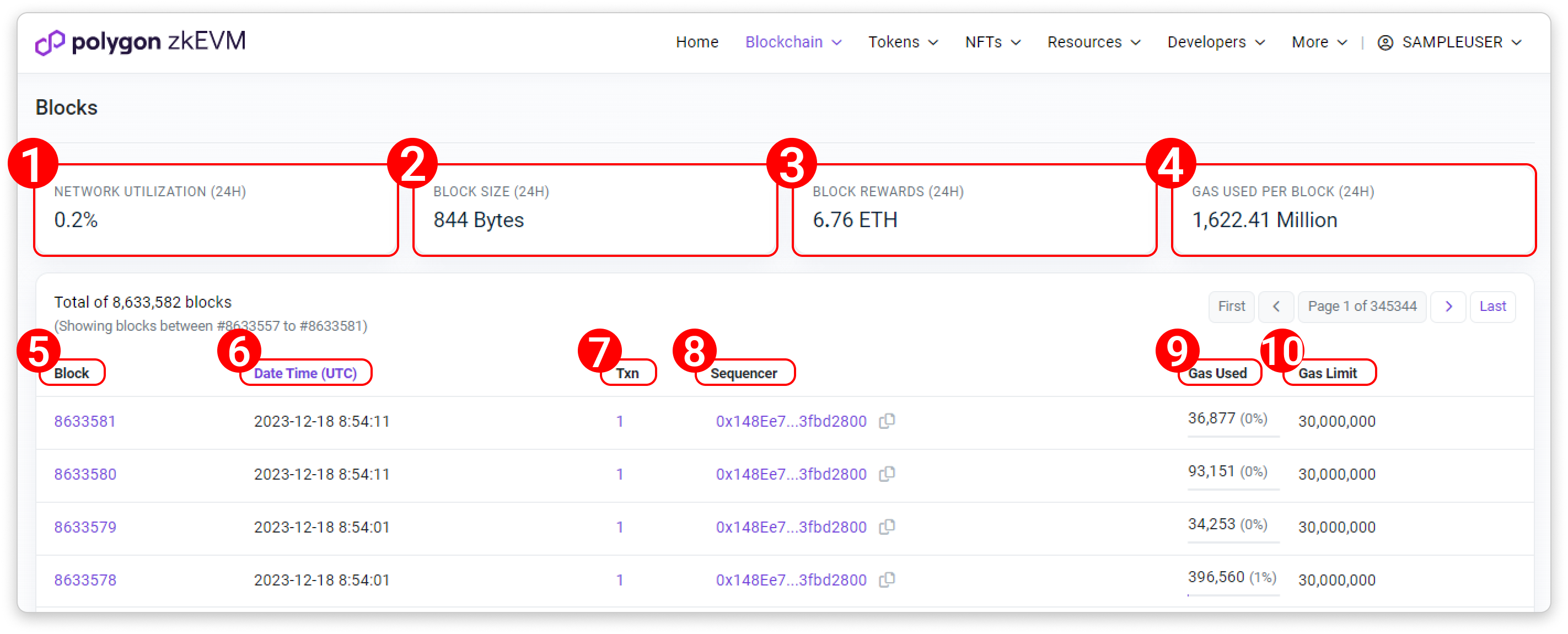 - Sequencer: Shows the sequencer that has successfully produced the block.