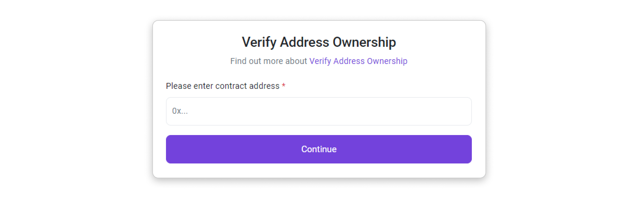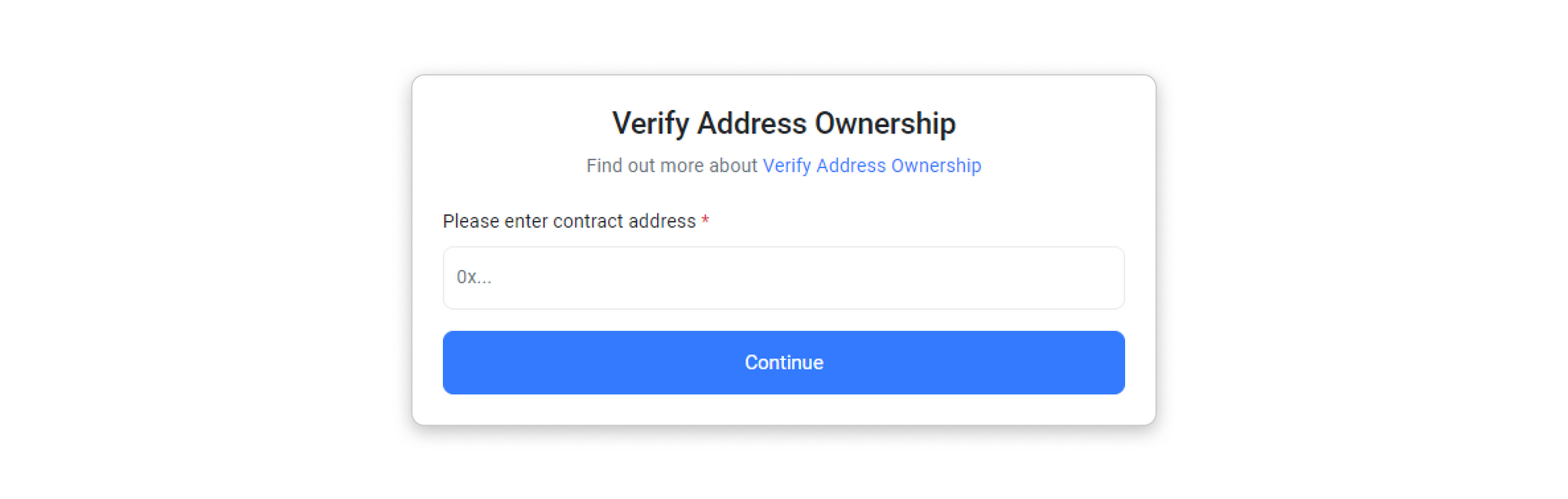 Step 4: Paste your contract address into the input box and click Continue