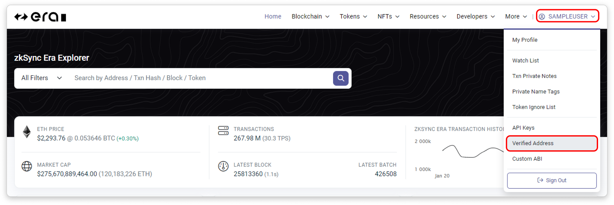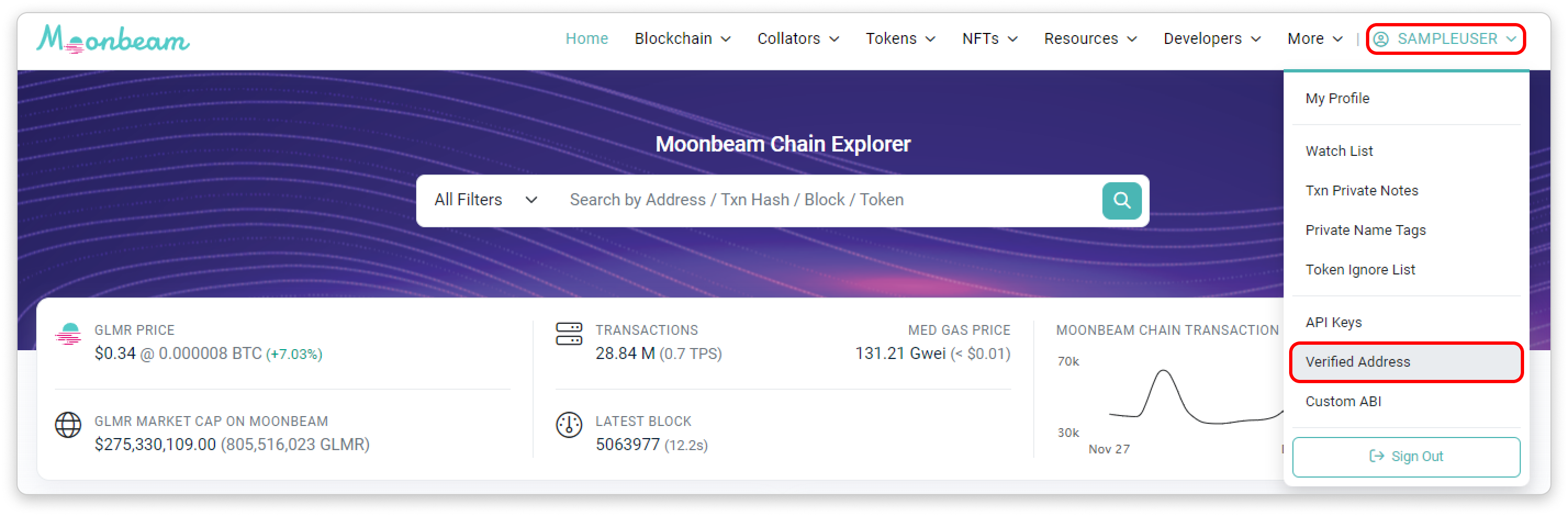 Now that you have claimed the ownership of your contract address, go back to FraxScan’s homepage and try clicking on Verified Address in the dropdown menu under your username. You will see that your contract address is now listed there and you can proceed to update the information of your token directly from that page without needing to sign another message.