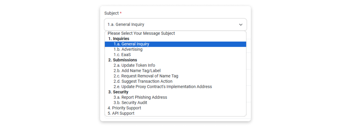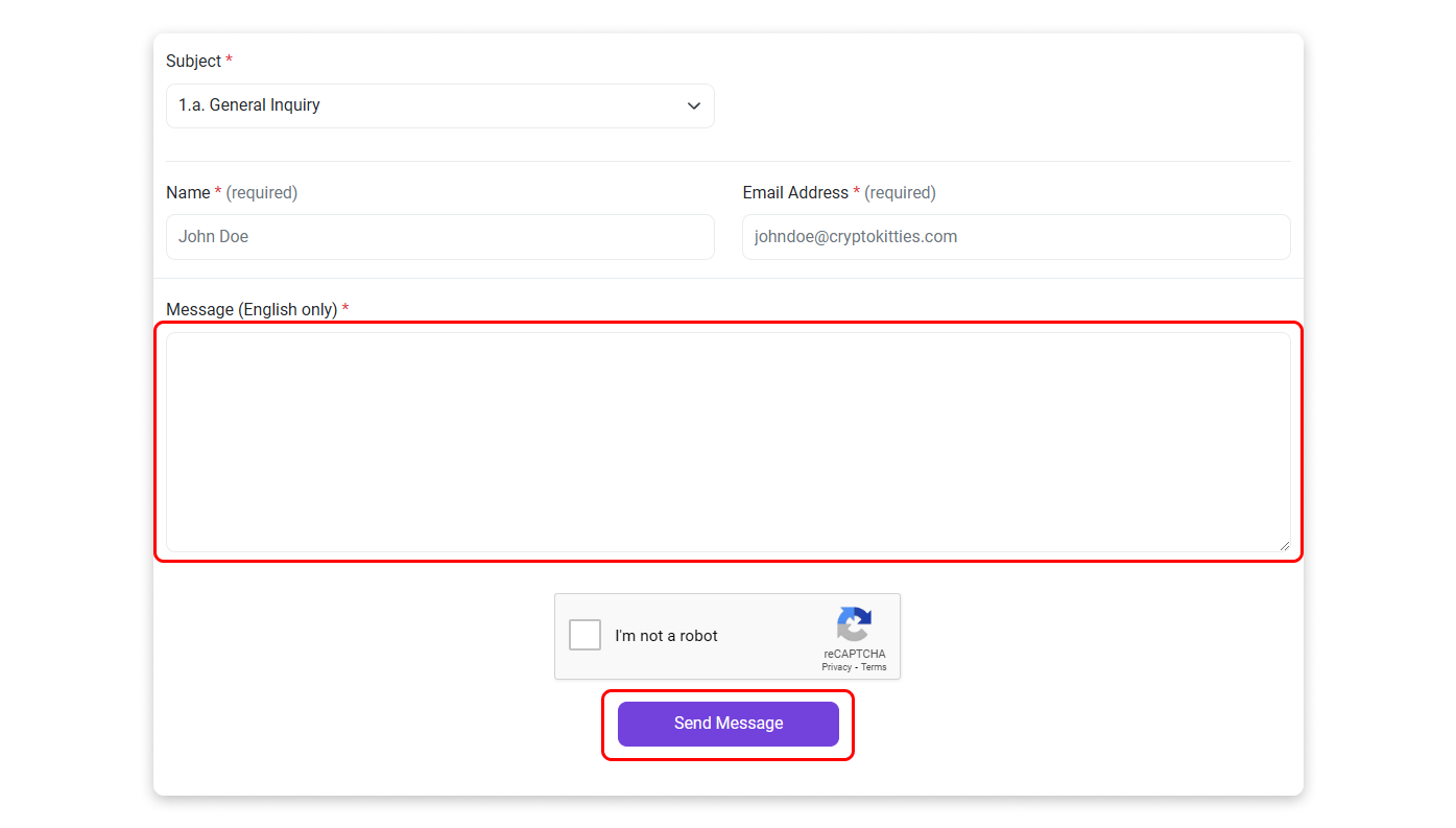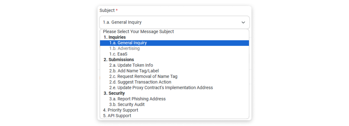 Step 1: Go to our Contact Us page and select "General Inquiry" as your message subject.