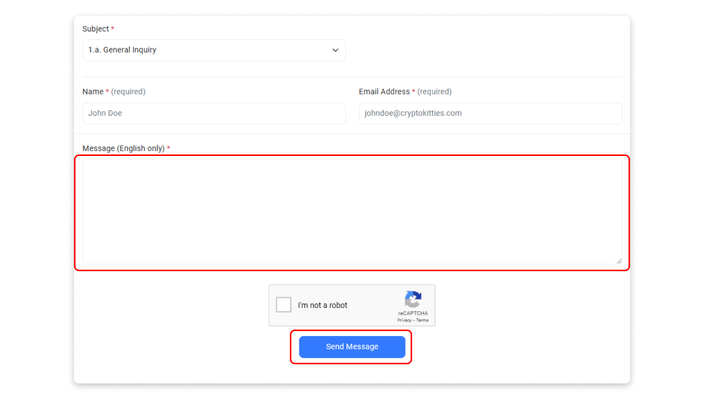 Step 2: Kindly fill in the information in the box provided below. In the message section, please include the following: